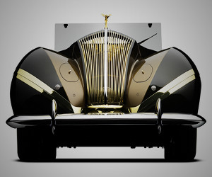 In a world of plastic cars with hybrid heartbeats, the joy of driving is a dying art. This 1939 Rolls-Royce Phantom III “Vutotal” Cabriolet by Labourdette recalls an era when driving was always an artful experience. Yet this is not your standard Rolls Royce Phantom III, this is the result of a complete rebuild by the Parisian designer Henri Labourdette. Labourdette tore the Phantom III down to the bones, adorning its body with gold plating and brass fixtures on a shape that stretched sensually from bumper to bumper. The “vutotal” term comes from that heavy slice of glass that rests above the instrument panel, a sharply-squared windshield that sits in a welcome contrast to the curves below. As we said of the 1948 Buick Streamliner, curves like these inspire poetry… [fairfield concours d'elegance via ab]